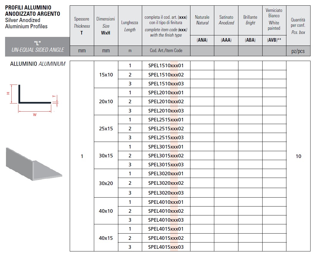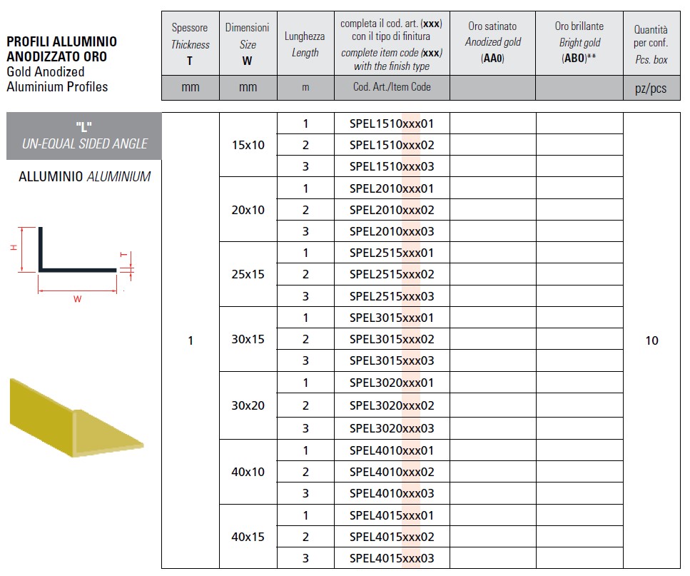 | Finiture | Brillante, Naturale, Nero Brillante, Nero Satinato, Oro Brillante, Oro Satinato, Satinato, Verniciato Bianco |